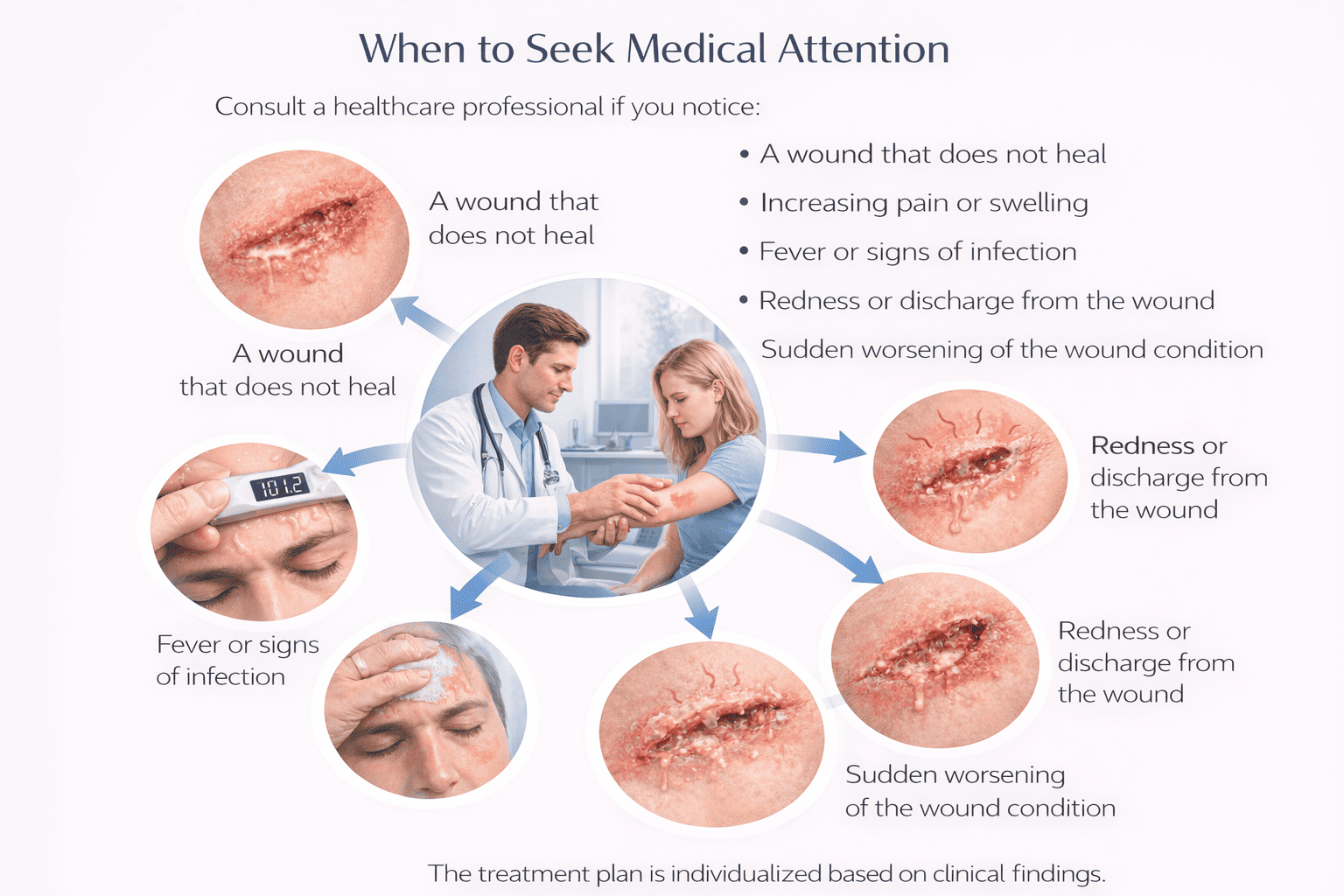 - Low-grade fever that may worsen