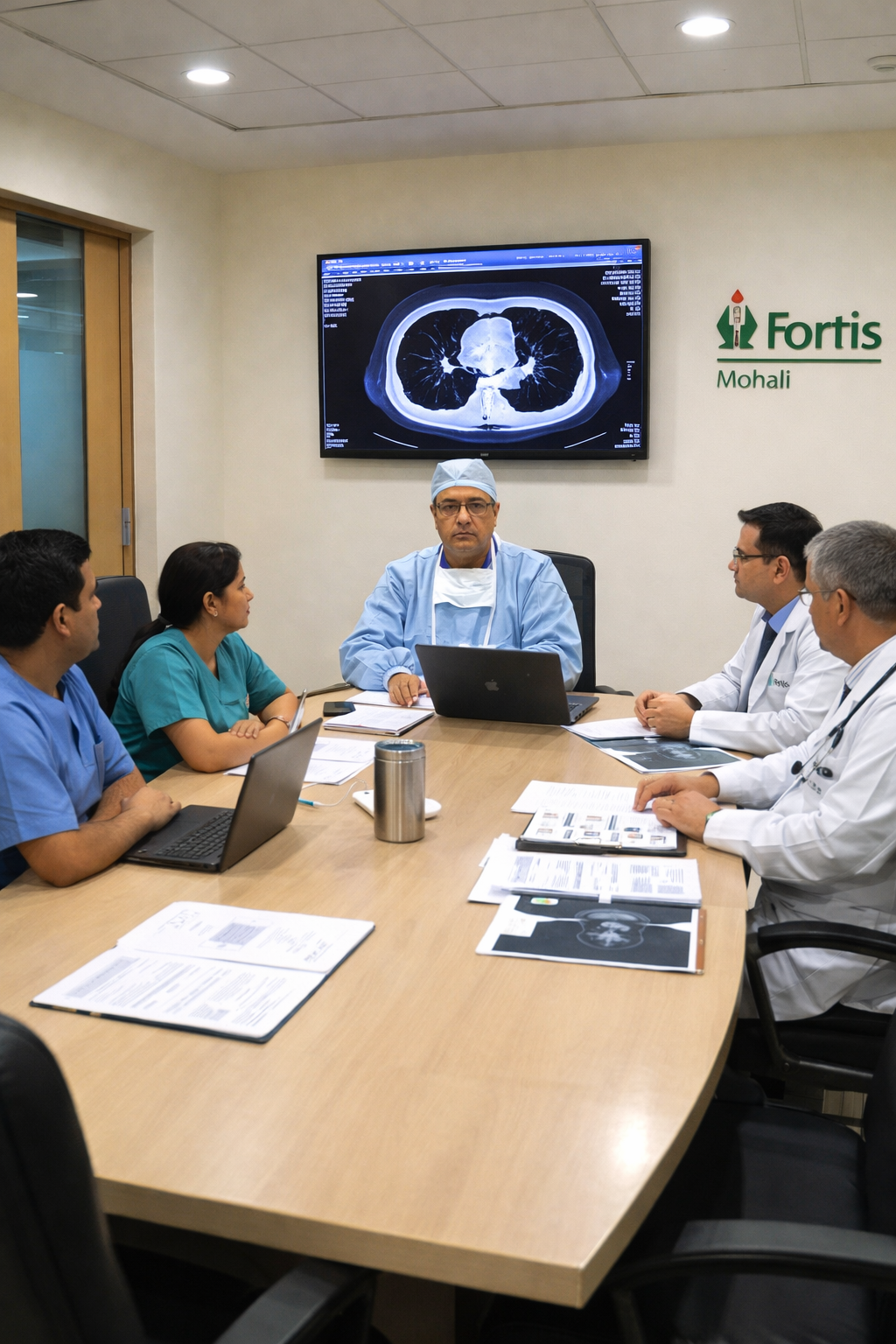 Cancer surgery at Fortis Hospital Mohali is delivered through a structured multidisciplinary team → About Dr. Kapoor — surgeons, oncologists, radiologists, and pathologists — who review every case together before a plan is finalised.