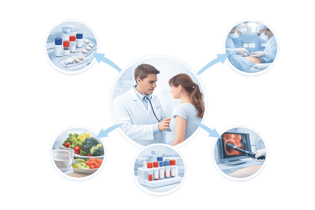 Treatment focuses on controlling infection, maintaining nutrition, and managing the fistula. The treatment approach may depend on several factors, including:
