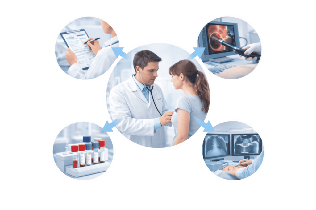 Diagnosis is based on clinical evaluation and diagnostic investigations, which may include: