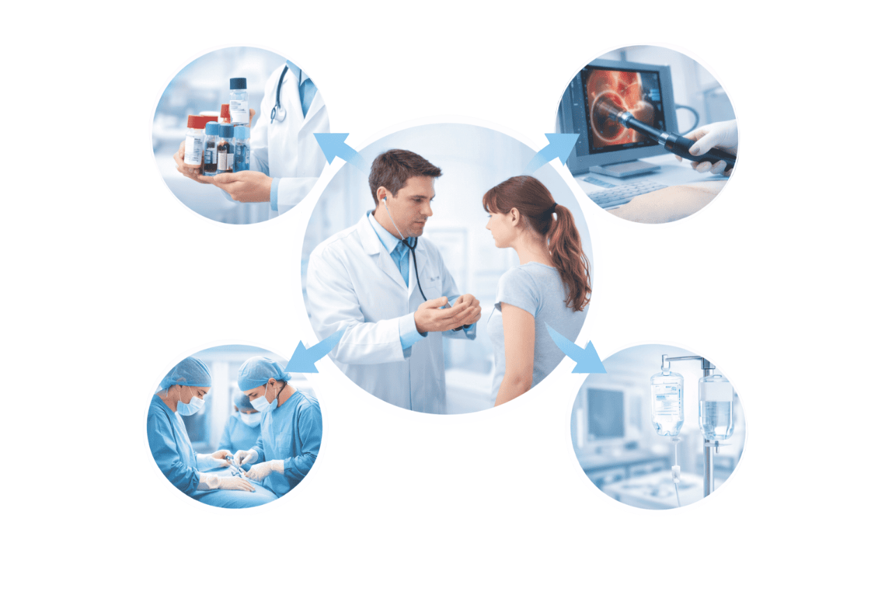 Management may involve medical therapy, endoscopic procedures, or surgical intervention in selected cases.
