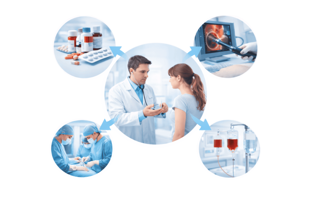 - Medications to reduce stomach acid or control bleeding