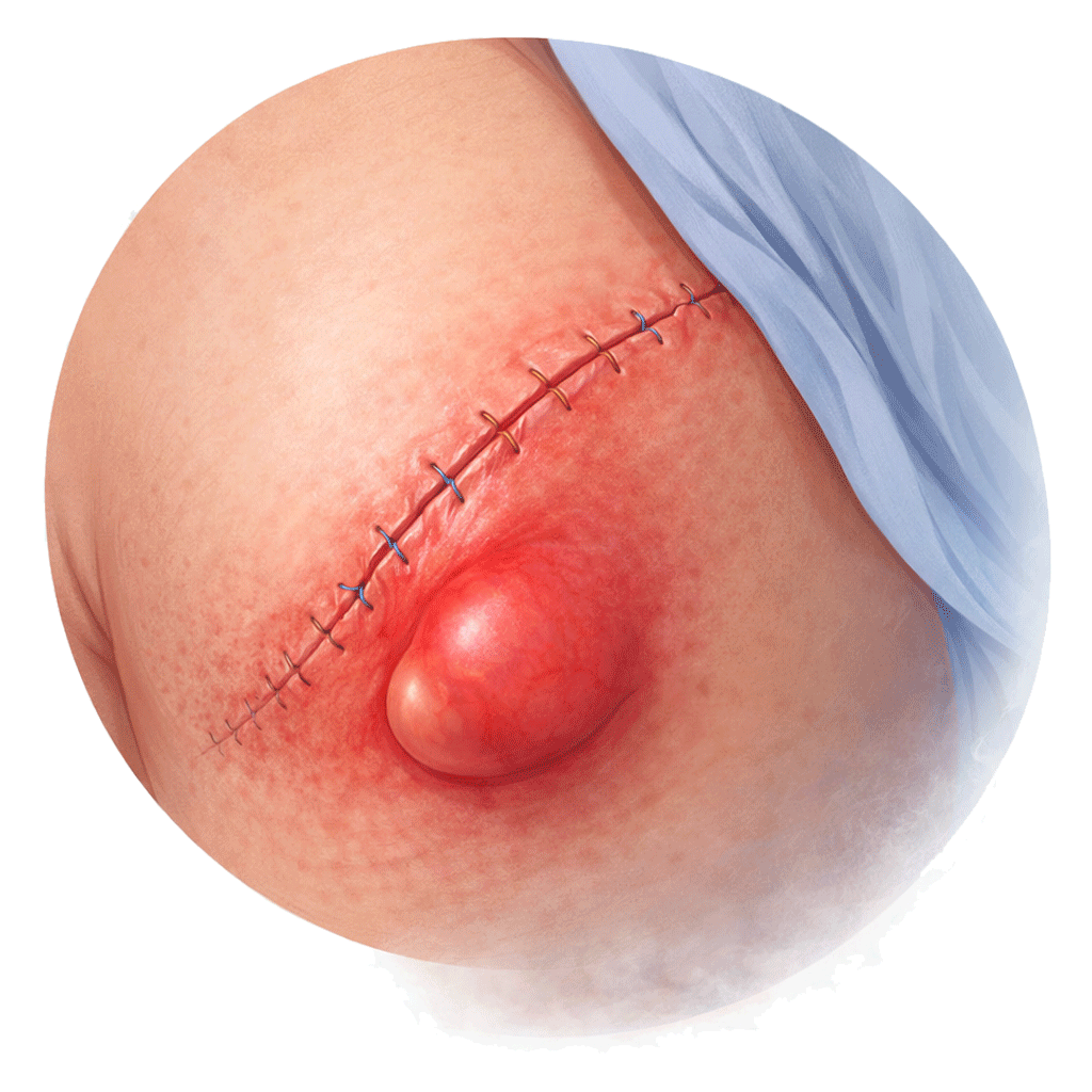- Visible bulge: A noticeable lump or bulge near a previous surgical incision, particularly when standing up or straining.