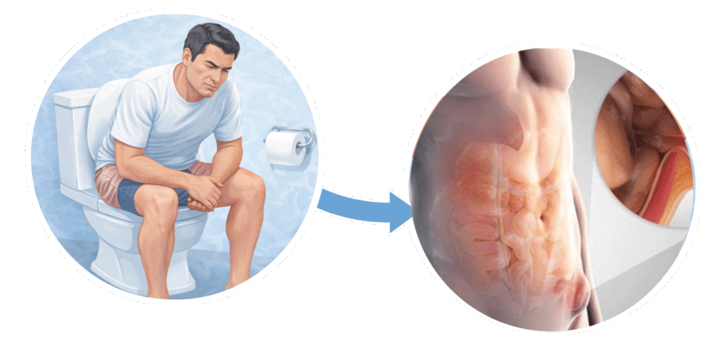 • Constipation with straining