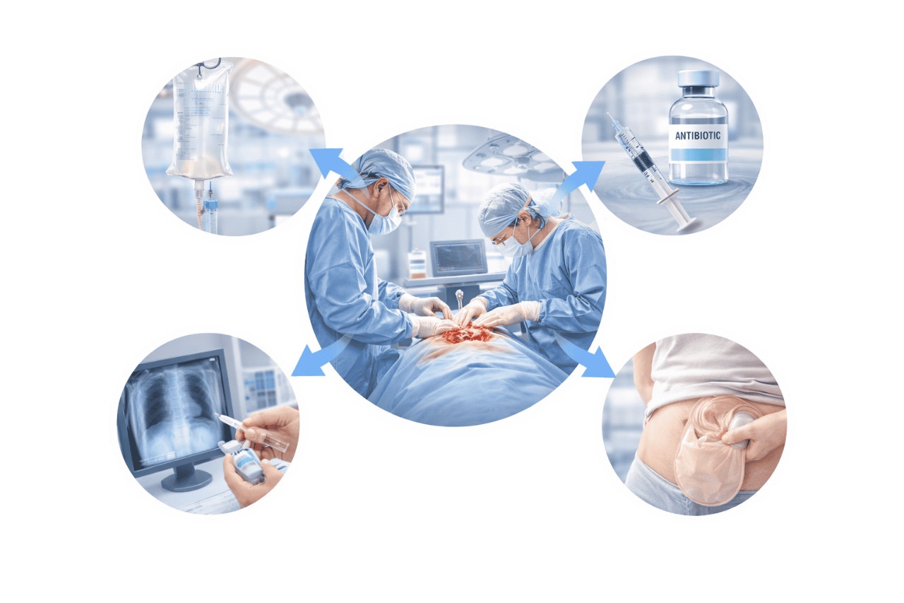 - Complications from medical procedures (e.g., endoscopy)