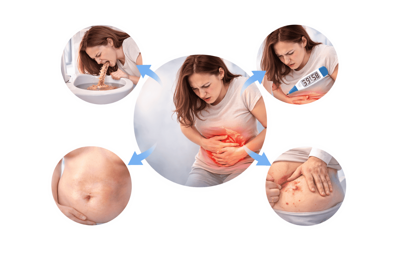 - Fever with abdominal tenderness