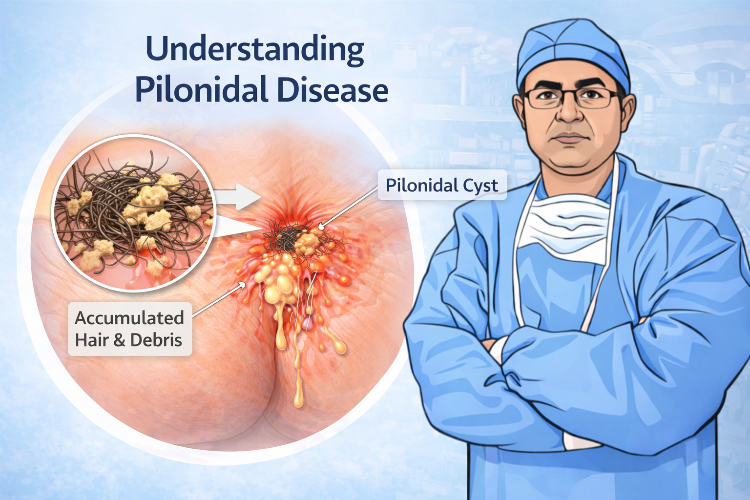 Pilonidal disease usually develops when hair and debris become trapped beneath the skin, leading to inflammation or infection. It is more commonly seen in young adults and may be associated with prolonged sitting, friction, or local irritation.